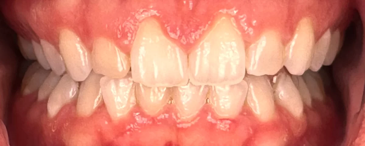 Our patient, a female in her mid-20s, had long been self-conscious about her gummy smile. Her upper front teeth appeared short and squatty due to excessive gum tissue. Additionally, her gum line had an irregular and uneven contour, making her hesitant to smile widely in social and professional settings. She sought a solution that would provide a more proportionate and aesthetically pleasing smile.